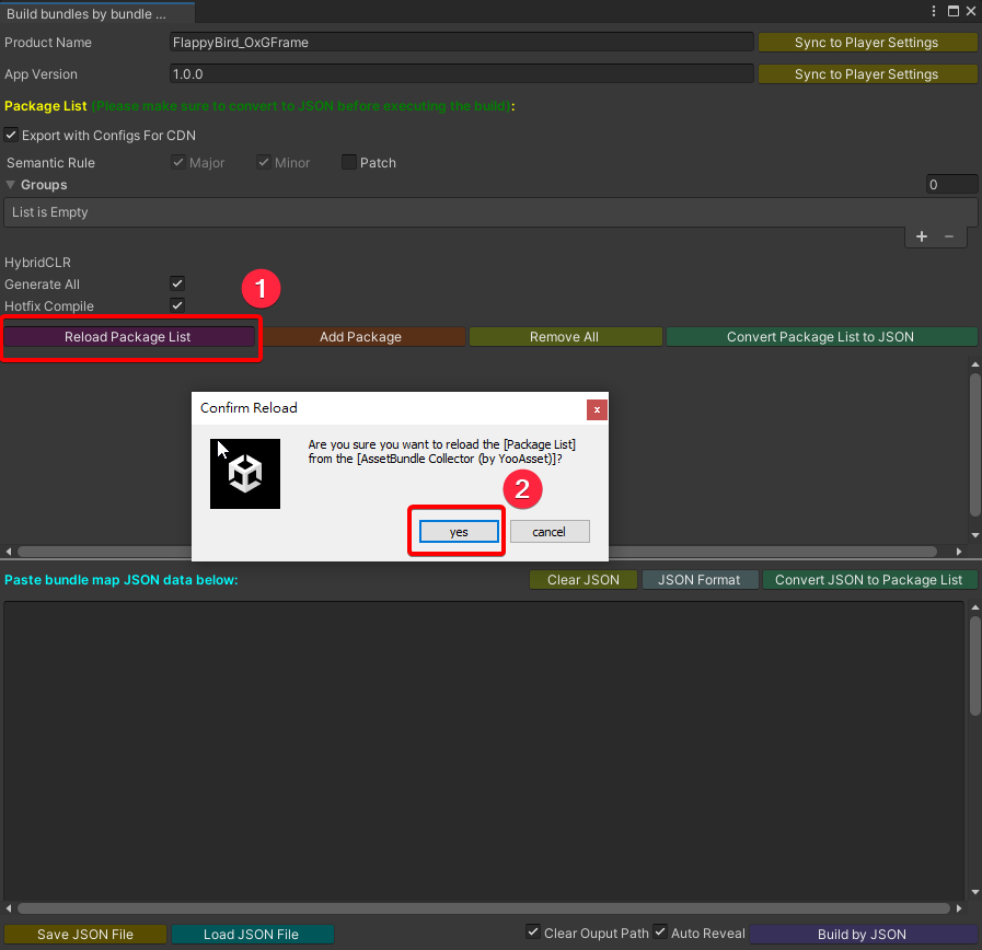 注意 請先詳見 YooAsset 資源配置 (蒐集)。
