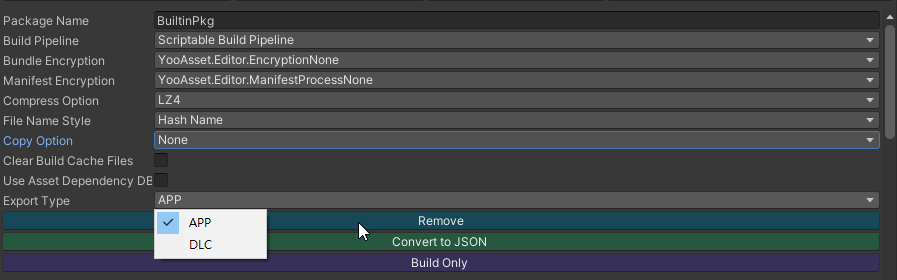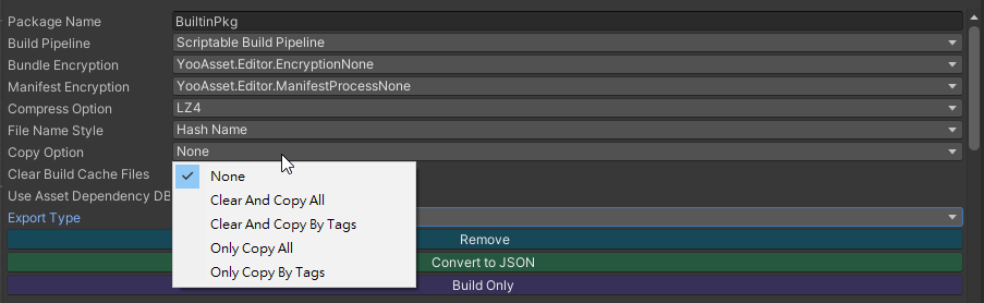 提醒 內置資源取決於 Copy Buildin File Option 選項,當 YooAsset 構建完畢後,將會依照設定放在 StreamingAssets 下。
