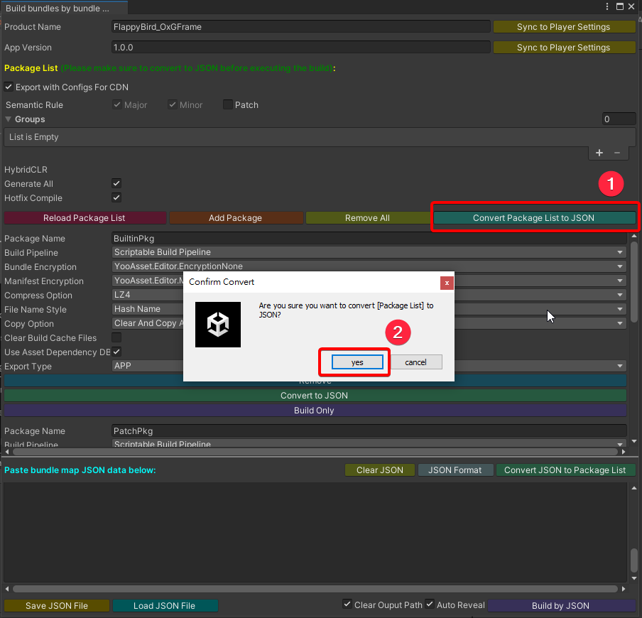 注意 另外可先詳見 YooAsset 資源構建 (打包)。