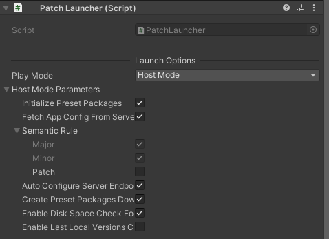 ParameterEntry list is configured in PatchLauncher, which can additionally add YooAsset FileSystem parameter configurations for different modes, but must specify the type (Reference: FileSystemParametersDefine + File System).