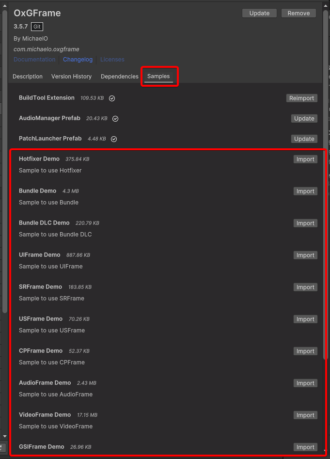Import sample projects from Package Manager.
