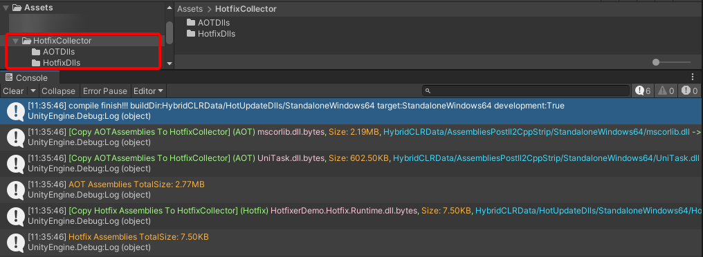 前置作业记得 HybridCLR install (安装) -> Generate/All (AOT 编译) -> 最后才能完成 Hotfix DLL 的编译。